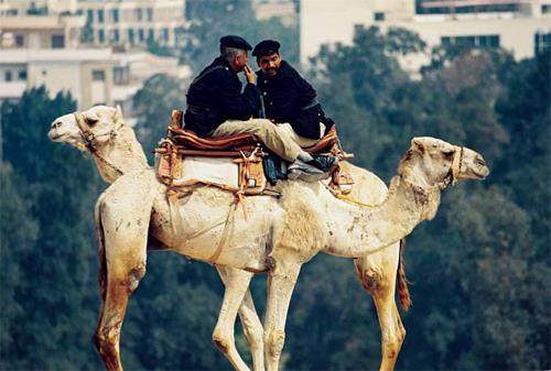 1998年3月13日,两名埃及骆驼骑警在开罗吉萨高地值勤。姚大伟 摄