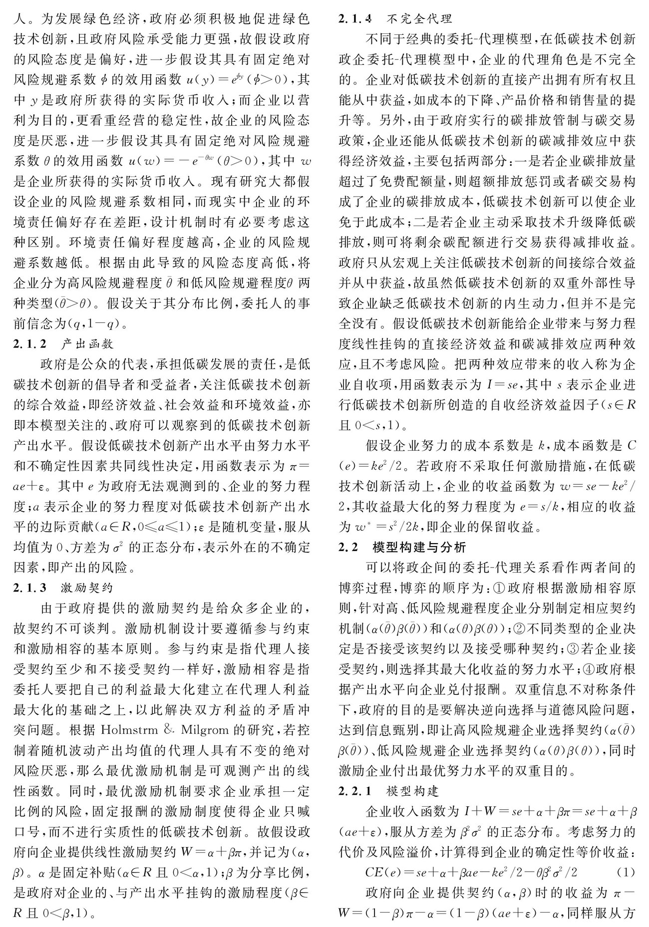 摘要:低碳技术创新是发展低碳经济的关键。为破解企业低碳技术创新内生动力不足问题,政府的激励机制尤为重要。然而过程中政府处于信息劣势地位,无法得知企业风险规避水平及签约企业的努力水平等信息。基于委托-代理框架所构建的低碳技术创新激励模型可解决激励中的双重信息不对称问题,从理论上研究政府对企业的最优激励强度。(剩余8159字)