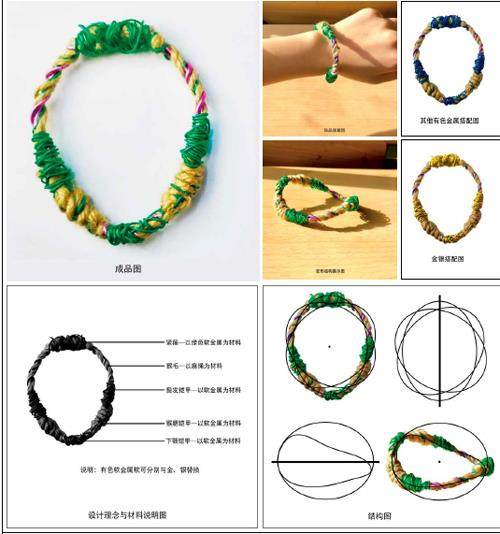 优秀传统文化逐渐融入现代产品设计,通过不同材料的创新表现打造具有文化内涵的产品。本设计以四大名著之一《西游记》中的紧箍咒为设计灵感,象征着定言真心、社会礼法和文明秩序,与现代核心价值观相呼应。本设计将其进行夸张表现,创造出符合共同认知但又独具个性的手环。设计原型以紧箍为基,猴脸为形,运用麻绳和金属元素表现猴毛和紧箍,金属和麻绳即是传统和现代的碰撞,金属光泽和麻绳质感贴切现代年轻化的首饰审美风格,色彩带来的视觉冲击和形态空间变化使得手环变幻无穷但又不离其中。(剩余63字)
