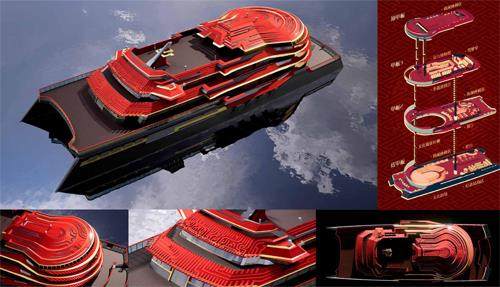 本设计以“基于荆楚文化的河湖概念游船设计”为主题,融合传统荆楚文化与现代设计理念,打造集文化体验与休闲消费于一体的“丹阙号”概念游船。在功能布局上,设计设置了荆楚文化体验游戏厅、AR螺旋观景长廊、民俗表演空间等沉浸式区域,提升游客的互动性与参与感,同时保留观景平台、纪念品商店等基础旅游功能,形成层次丰富、动静结合的空间体系。(剩余440字)