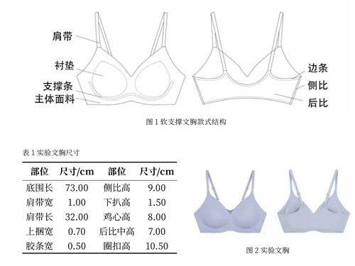 女性乳房被视为反映女性形态美的因素之一,并且也是女性健康关注的重点[1]。随着现代女性健康意识的提升和对身体感知的日益重视,传统钢圈文胸在舒适性方面的局限性日益凸显。这一趋势推动了无钢圈内衣市场的快速增长。市场调研表明,兼具良好的承托性与穿着体验的舒适性仍然是女性消费者的核心诉求[2]。
