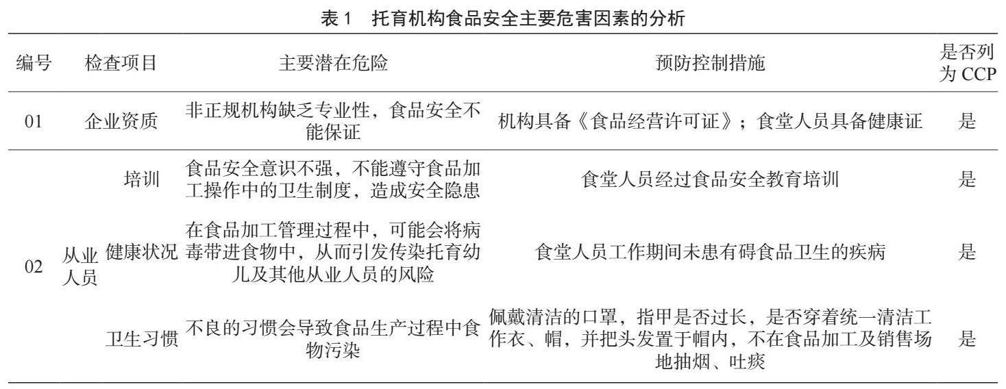 托育机构管理中食品安全的危害因素分析与关键点控制