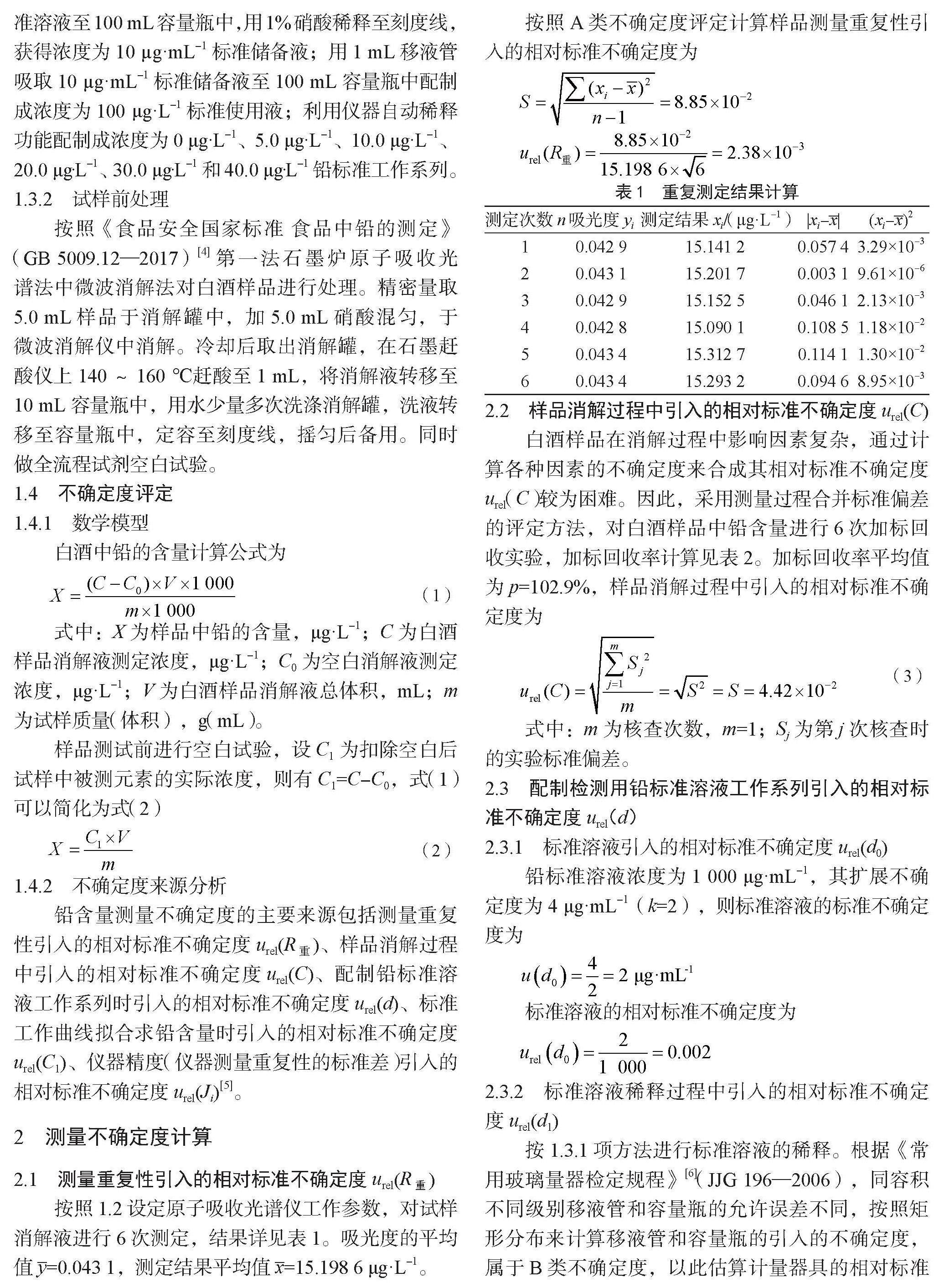 微波消解-石墨炉原子吸收法测定白酒中铅含量不确定度评定