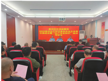 5月8日,郑州市惠济区市场监督管理局组织召开食品生产企业落实主体责任推进会暨食品生产安全知识培训考核会,辖区100余家食品生产企业、小作坊负责人及属地监管人员齐聚一堂,共商食品安全主体责任落实路径,共筑民生安全防线。