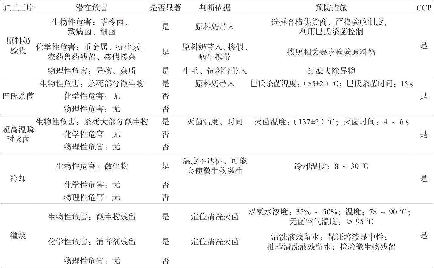 Abstract: The purpose is to apply the hazard analysis and control point (HACCP) system in the production process of sterilized milk (pure milk) at room temperature, so as to achieve systematic control of significant hazards, ensure that these hazards are eliminated, or reduced to an acceptable level, thereby ensuring food safety. In this paper, according to the seven application principles of the HACCP system, key control points are determined to provide a basis for formulating HACCP plans and prevention and control measures. Based on the seven application principles of the HACCP system, this article identifies the key control points during the processing of room temperature sterilized milk (pure milk), formulates corresponding corrective actions, establishes prevention and control measures, thereby eliminating food safety hazards and providing scientific basis and methods for preventing food safety incidents.