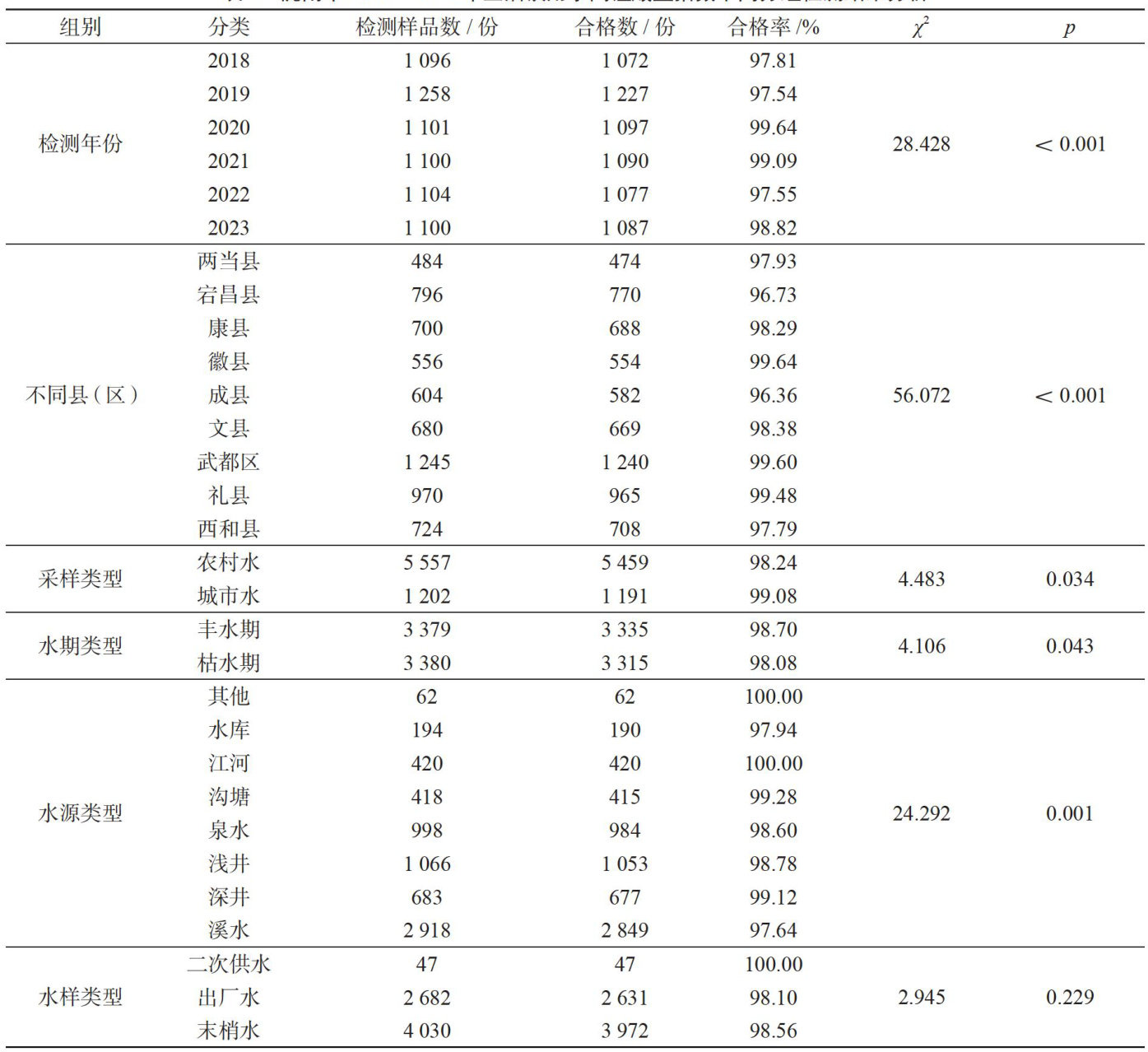 陇南市2018—2023年生活饮用水中高锰酸盐指数监测结果分析