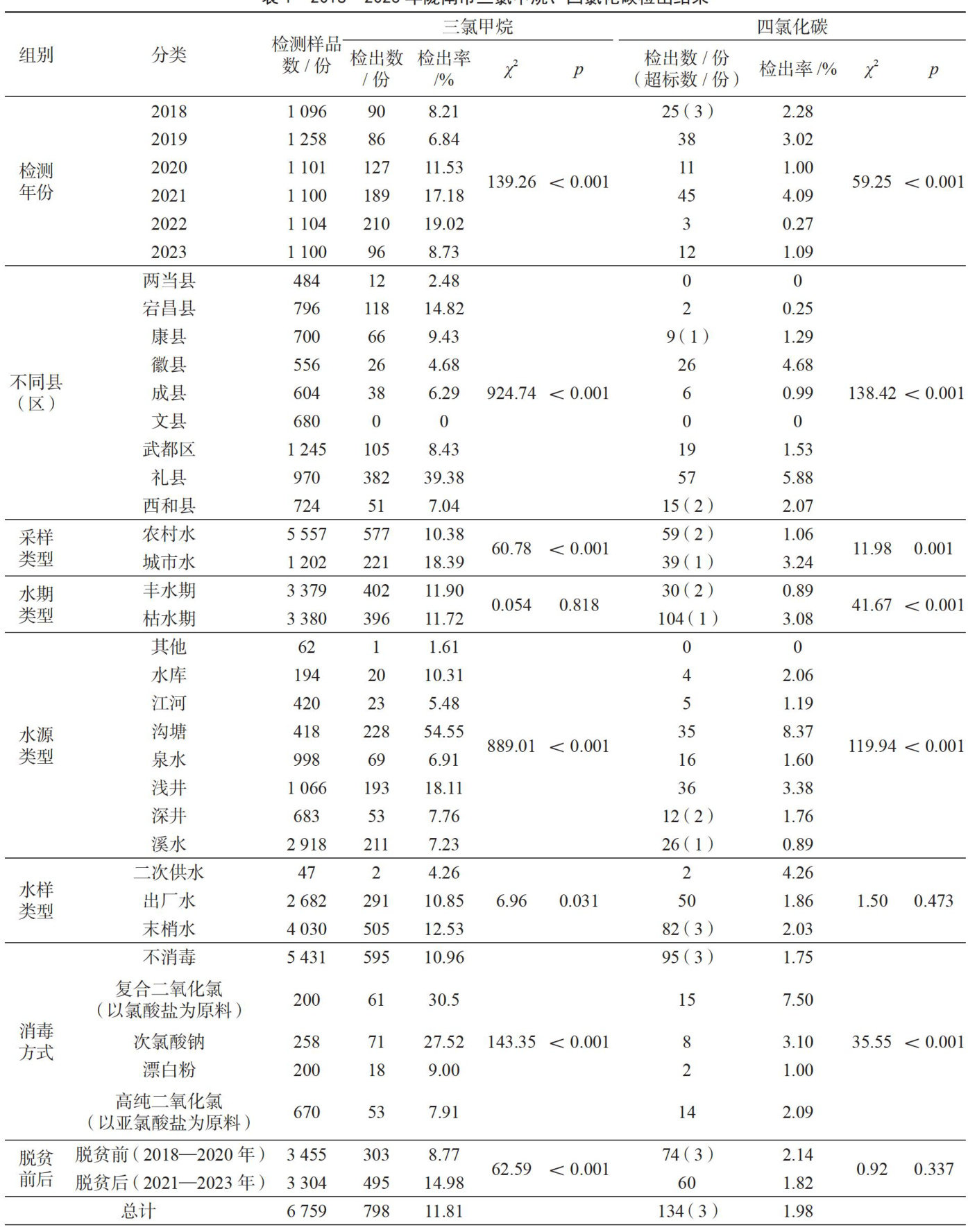 陇南市2018—2023年生活饮用水中三氯甲烷四氯化碳监测结果分析