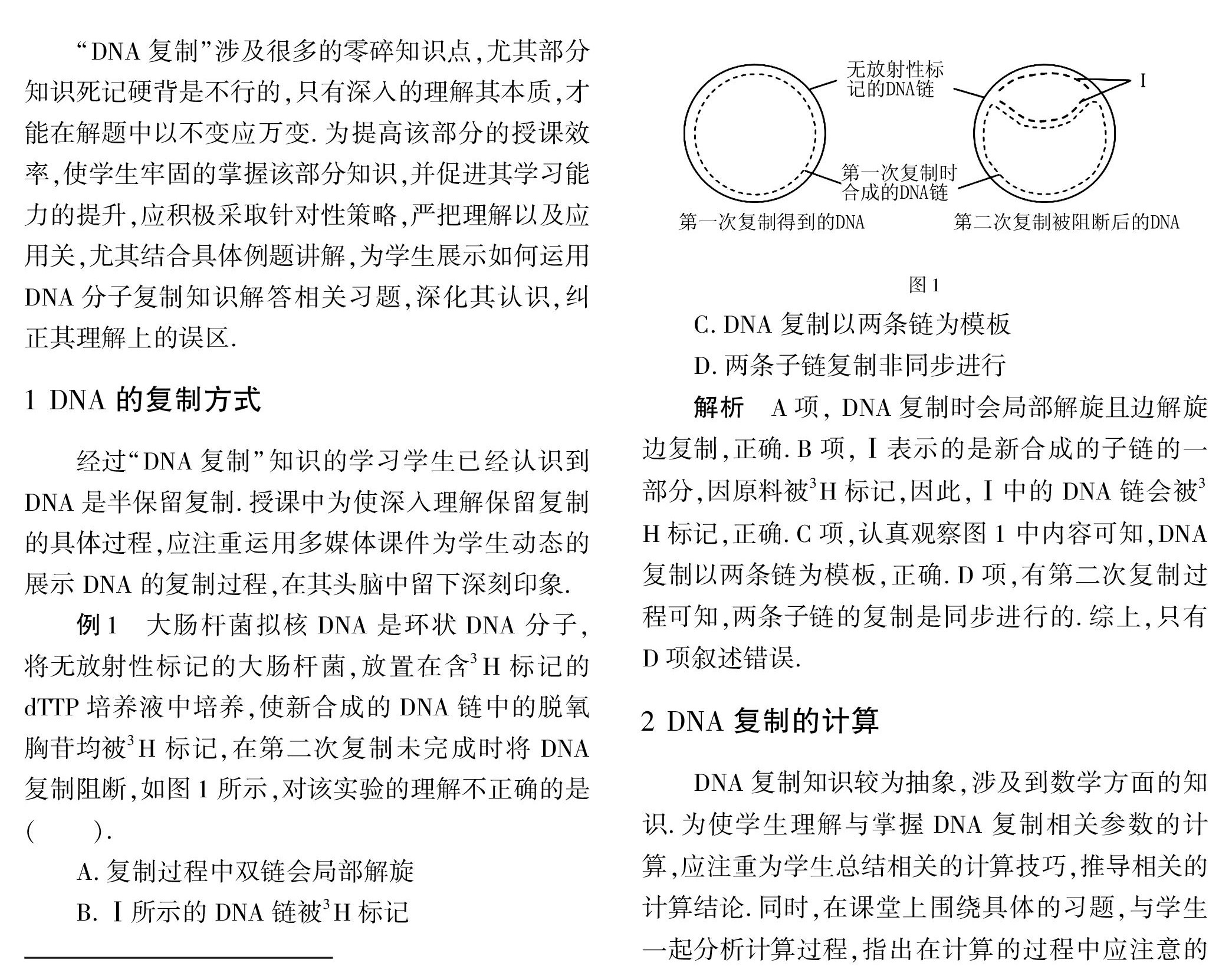 高中生物“DNA复制”知识的理解及应用