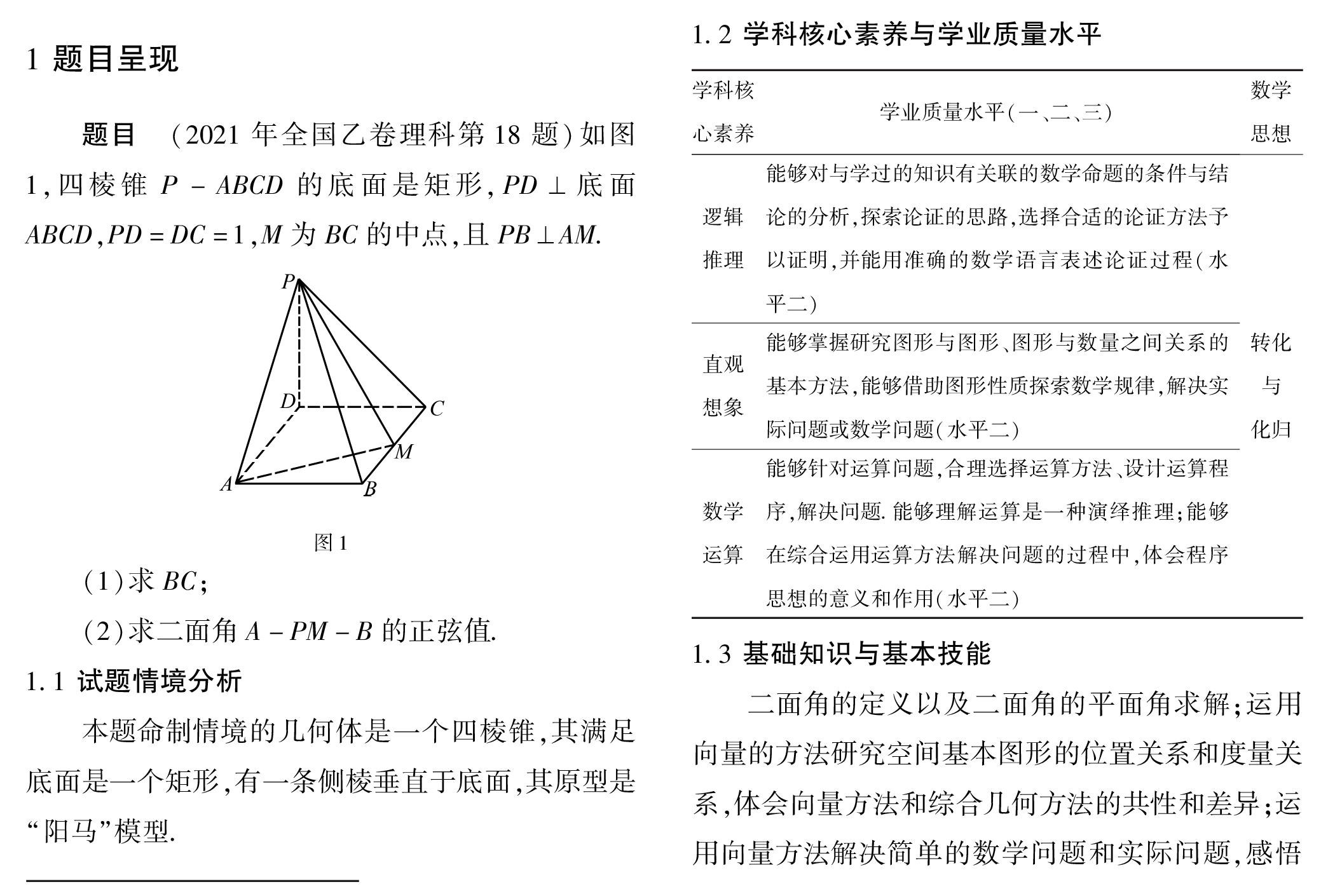 摘 要:本文对2021年全国高考乙卷立体几何试题的解法做了多角度的解析,进而对立体几何中二面角的求解给出了多种解法,也对二面角模型作了一个系统的介绍.
