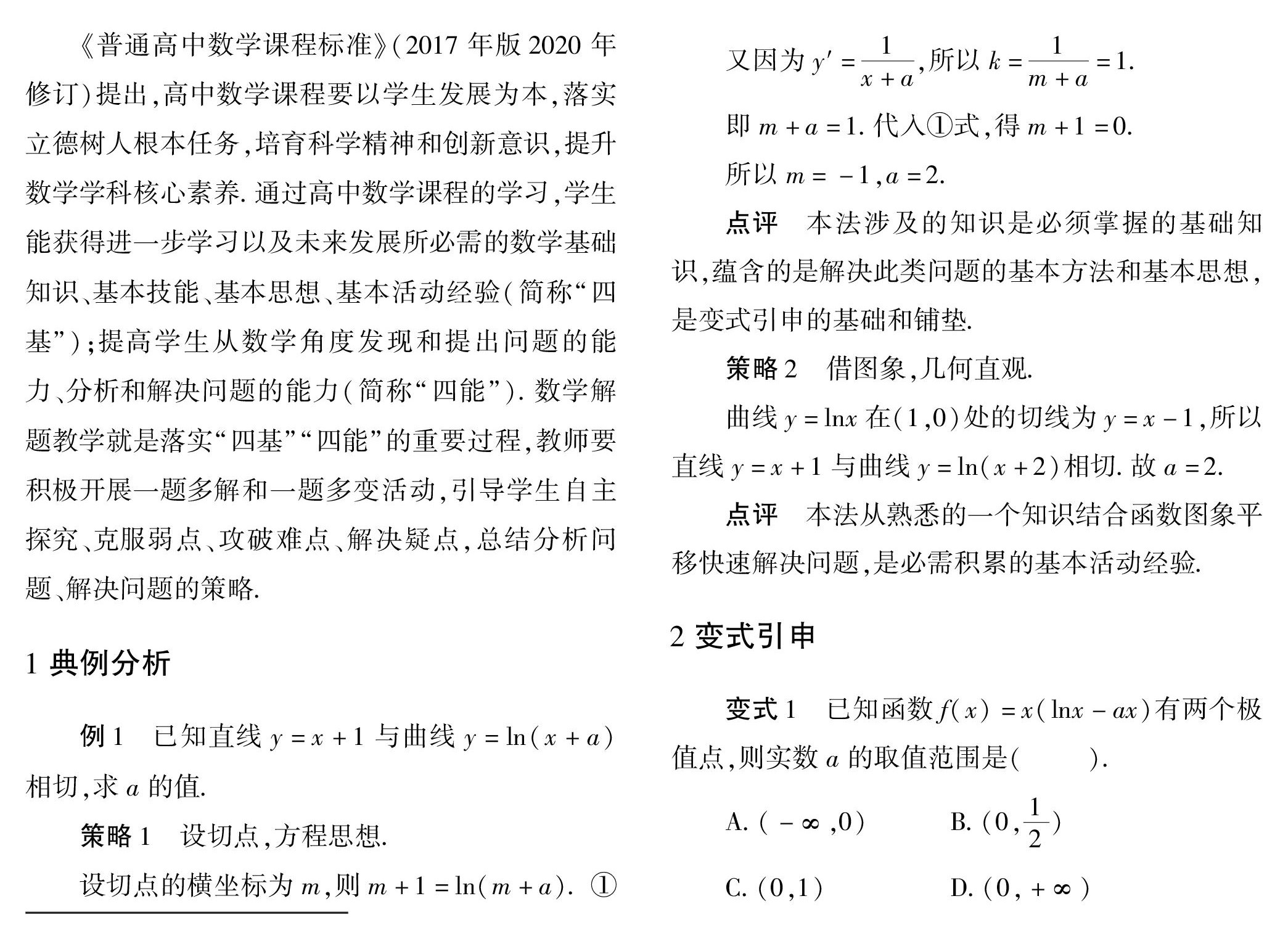 关键词:含参函数;一题多解;一题多变;深度学习