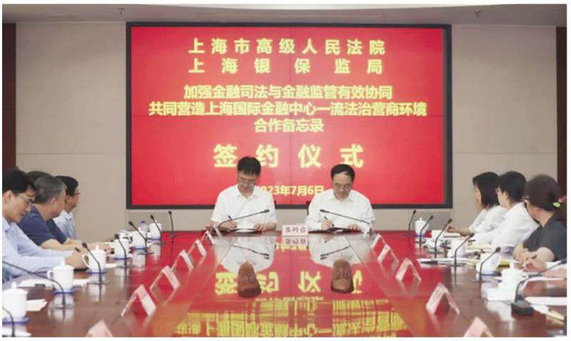 7月6日,市高院与上海银保监局举行《加强金融司法与金融监管有效协同 共同营造上海国际金融中心一流法治营商环境合作备忘录》签约活动暨学习贯彻习近平新时代中国特色社会主义思想主题教育调研座谈会。合作备忘录共十条,内容主要包括双方共建风险化解、法治优化、高效执行、纠纷化解、信息互通、咨询会商、法治调研、人才培养、党建联动及协同保障等十项工作机制。(剩余1049字)