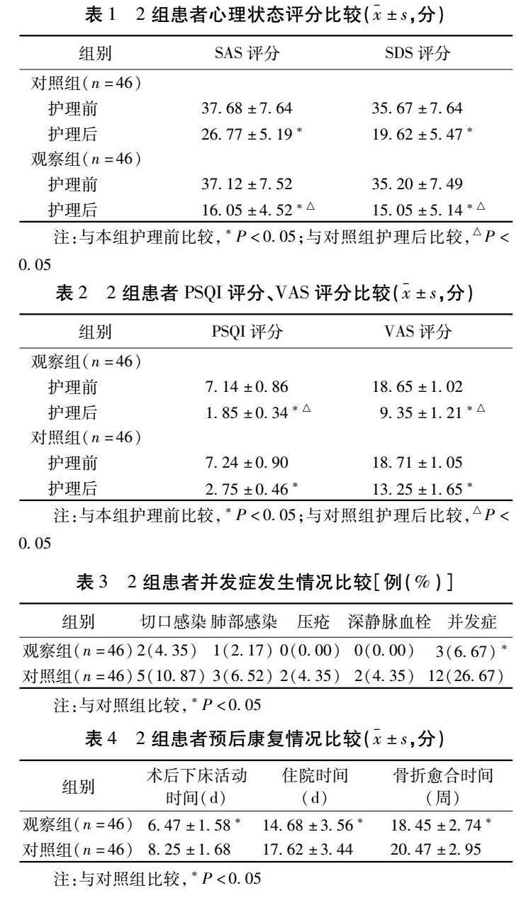 观察心理护理联合疼痛护理干预对老年股骨颈骨折患者术后疼痛及睡眠质量的影响