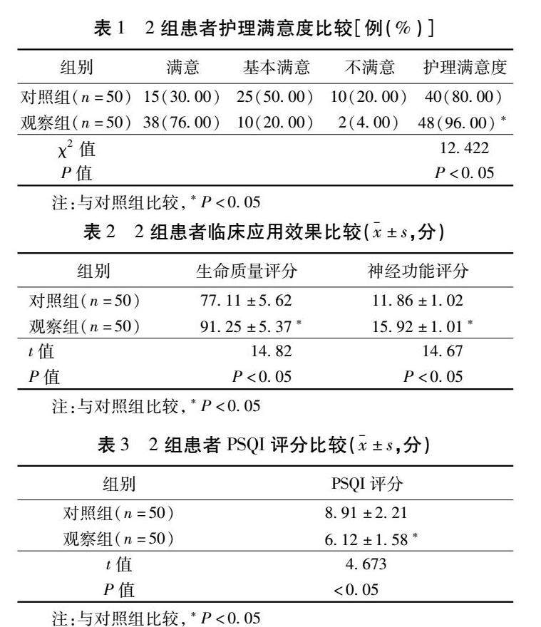 摘要 目的:分析综合护理在脑出血置管吸引手术患者中的应用效果及对睡眠的影响。方法:选取2019年4月至2020年4月谷城县人民医院收治的脑出血置管吸引手术患者100例作为研究对象,按照随机数字表法分为观察组和对照组,每组50例。对照组给予常规护理干预,观察组给予综合护理干预。采用匹兹堡睡眠质量指数(PSQI)比较2组患者干预前后睡眠质量的改善情况,采用生命质量评分、神经功能评分量表比较2组患者干预前后生命质量以及神经功能的改善情况,同时比较2组患者的护理满意度。(剩余5651字)