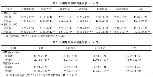 摘要 目的:观察对阻塞性睡眠呼吸暂停(OSA)患儿开展鼻窦冲洗联合多导睡眠监测护理对睡眠质量以及生命质量的影响。方法:回顾分析2023年4月至2024年6月OSA患儿临床资料,以2023年4月至12月进行常规护理的44例OSA患儿为对照组,以2024年1月至6月进行鼻窦冲洗联合多导睡眠监测护理的44例OSA患儿作为观察组。(剩余6788字)