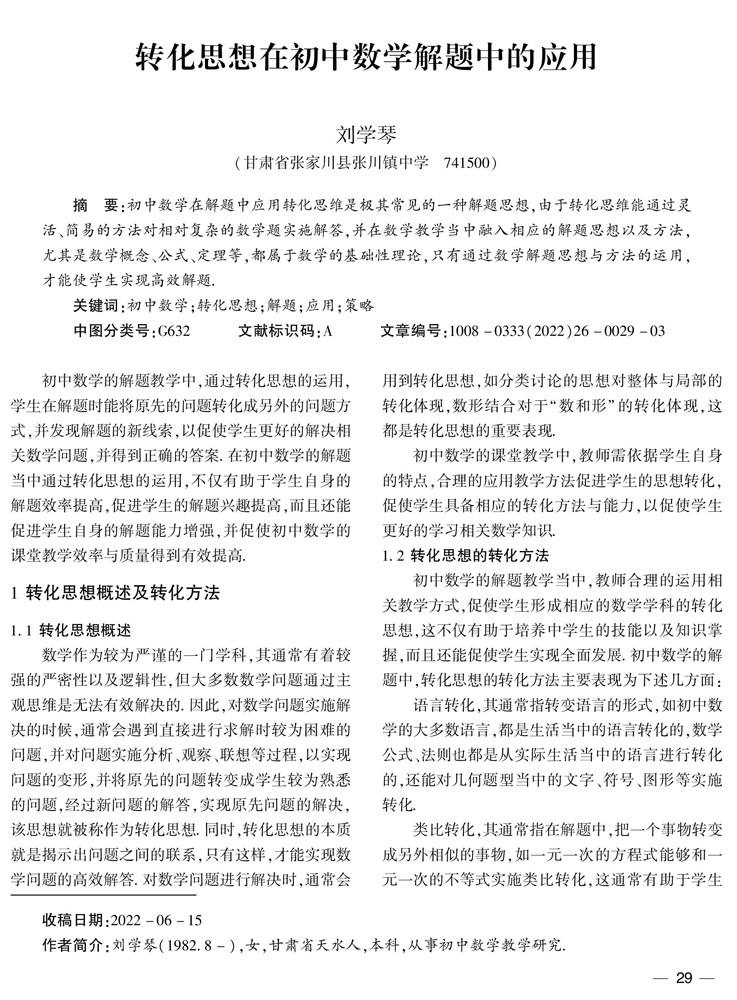 转化思想在初中数学解题中的应用