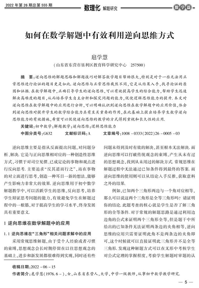 如何在数学解题中有效利用逆向思维方式