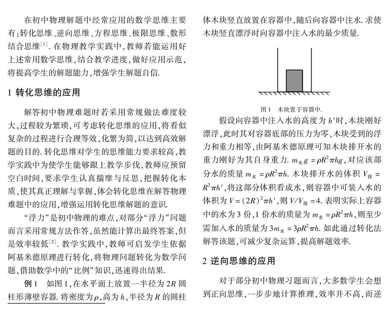 关键词:数学思维;初中物理;难题;解答
