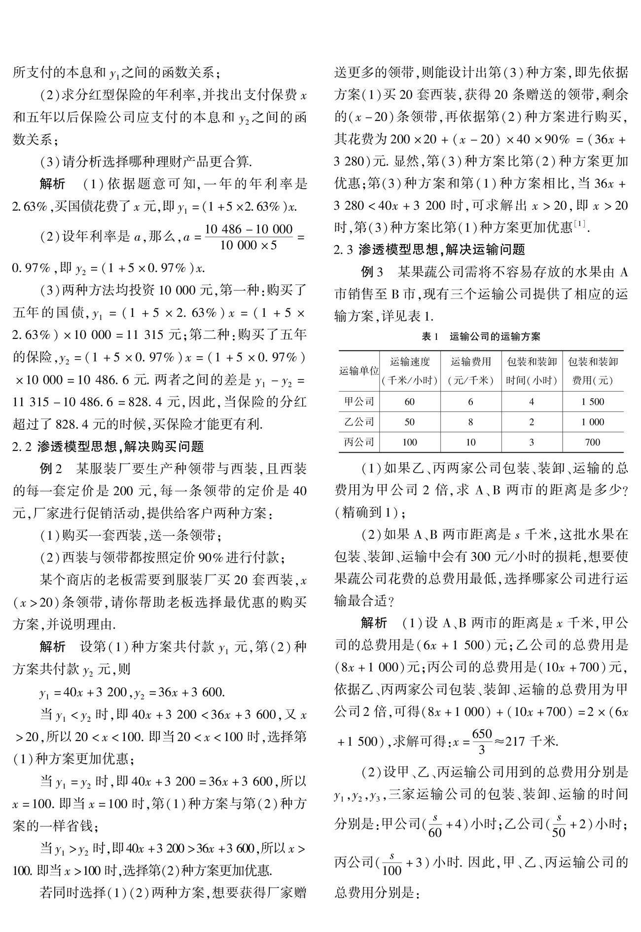 渗透模型思想 提高解题能力