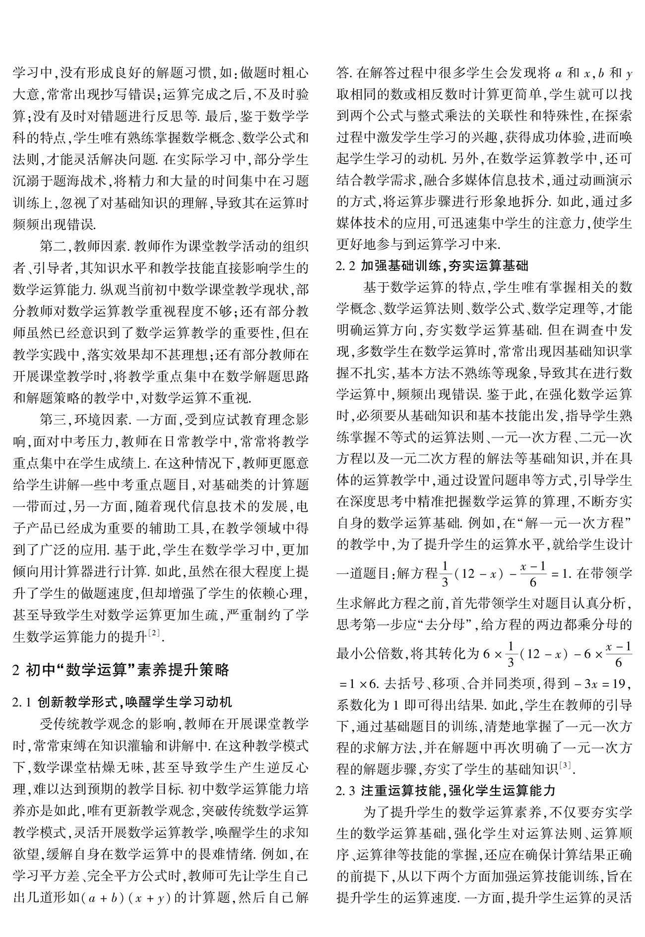 初中数学核心素养“数学运算”常见问题及有效策略分析