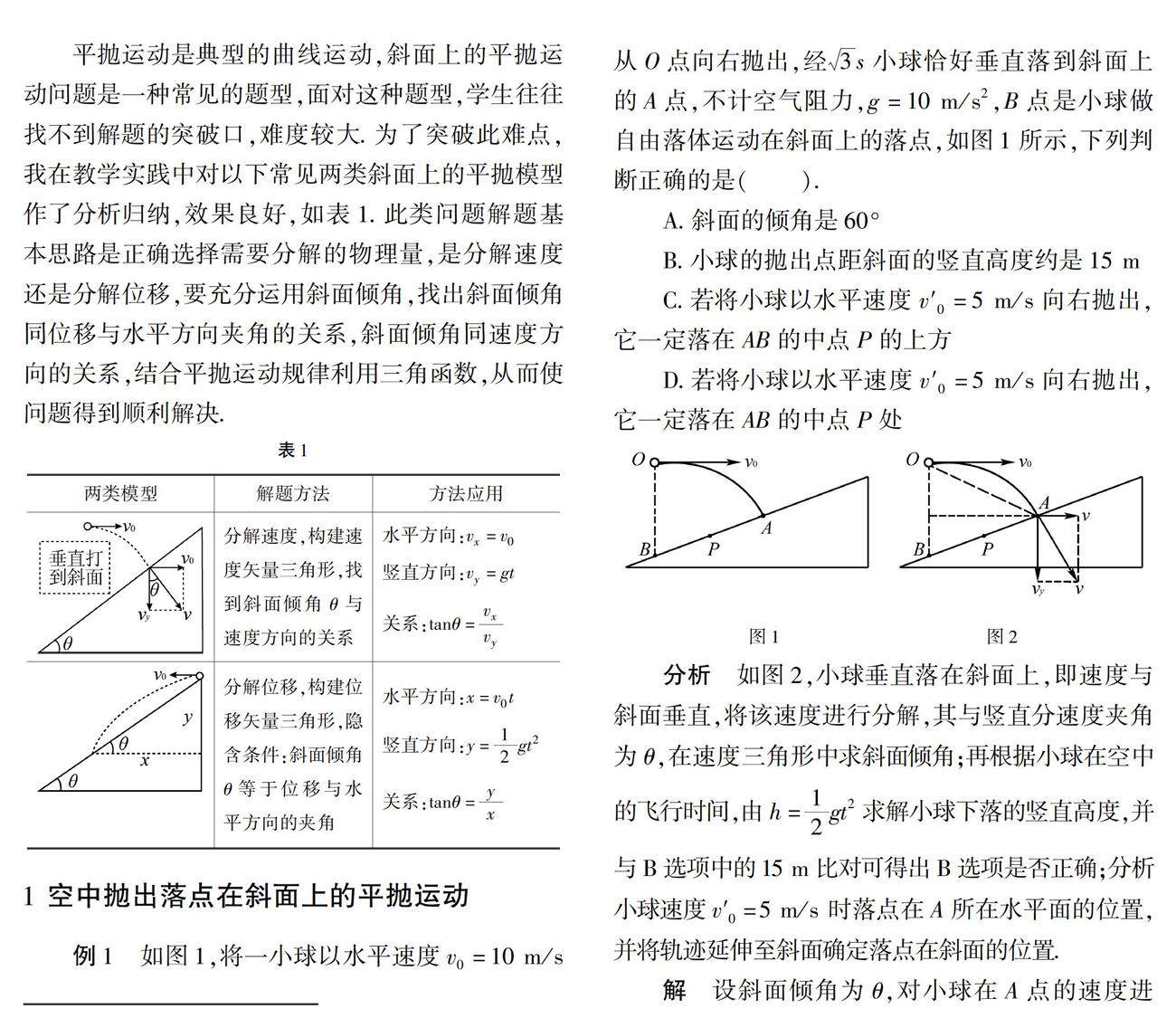 关键词:高中物理;斜面上的平抛运动;两类模型;解题方法及应用