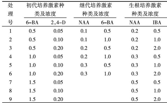 AbstractTaken stem segment of Syringa vulgaris as experiment material, the optimal culture conditions based on disinfection,primary culture,secondary proliferation culture,rooting culture and domestication transplantation by disinfectant,disinfection time,basic medium,hormone ratio and transplanting matrix were carried out.The results show that,the best disinfectionmethodwas 75% alcohol 15s+1%HgCl24min. the survival ratewasashigh as 84% ;with stem segment as the explant material.The best base medium for the primary culture was MS medium,the optimal medium for the primary culture was MS+2,4-D 0.1 mg/L+6-BAl.0mg/L . Suboptimal medium for proliferation was MS+6 -BA 0.5mg/L+NAA 0.2mg/L, the proliferation coefficient was 5.65,The optimal rooting medium was 1/2MS+IBA2.0mg/L+NAA0.2mg/L, the rooting rate was 84.9% .Root seedlingswere domesticated and transplanted to vermiculite,the survival rate was 82.2% :