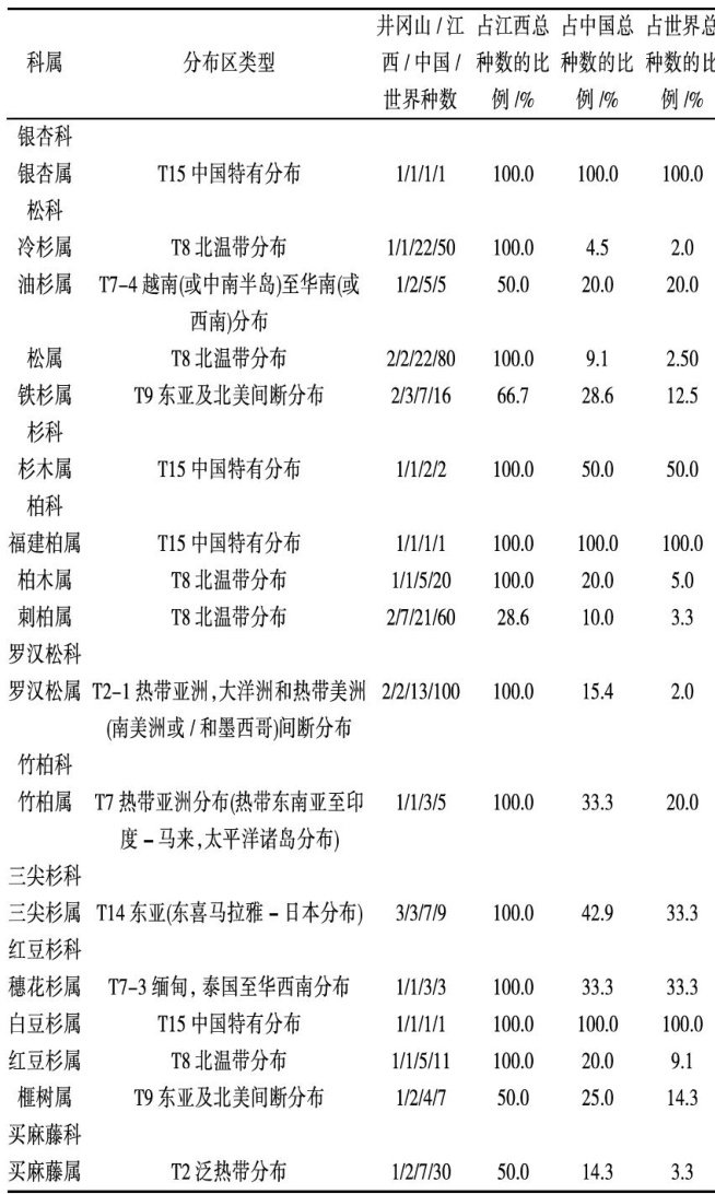 井冈山地区裸子植物区系分析