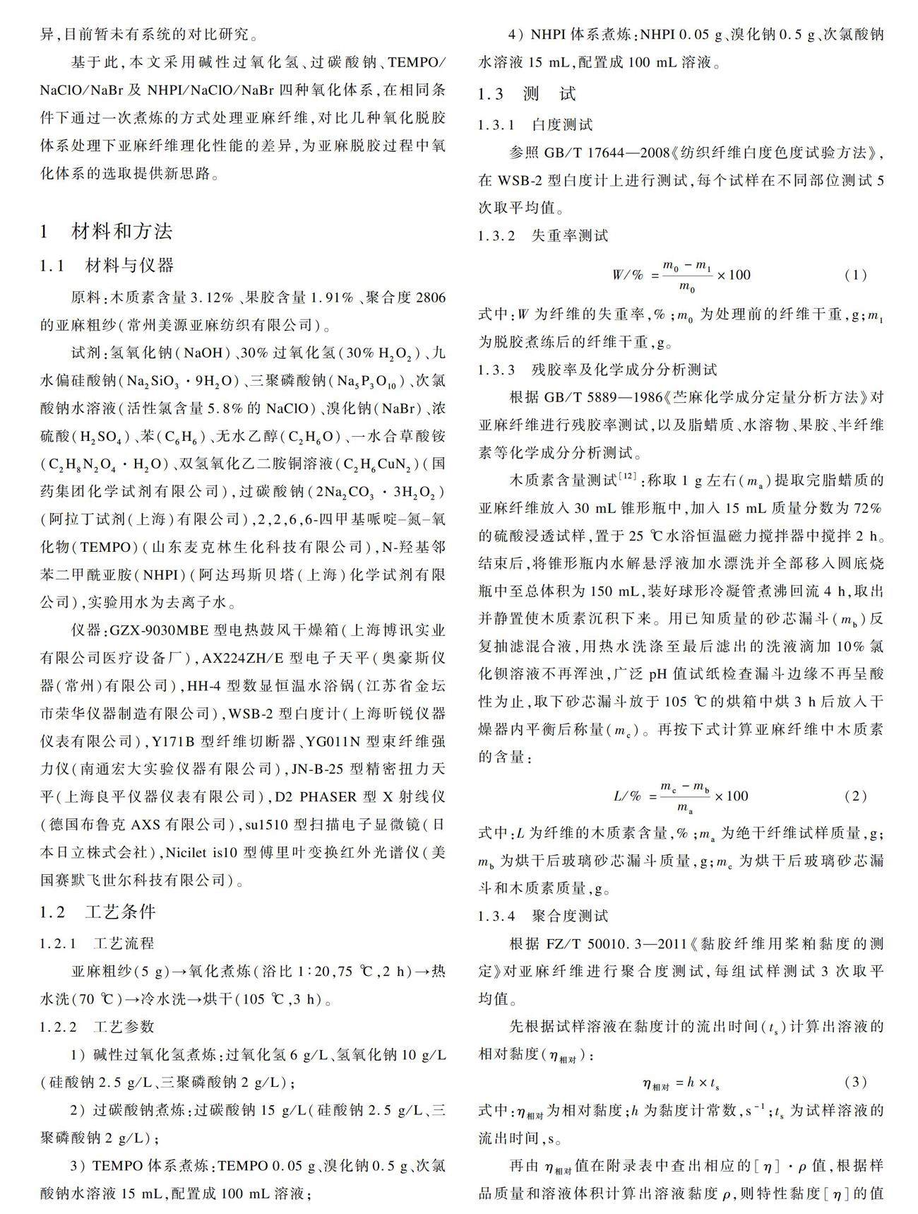 氧化脱胶体系对亚麻纤维理化性能的影响
