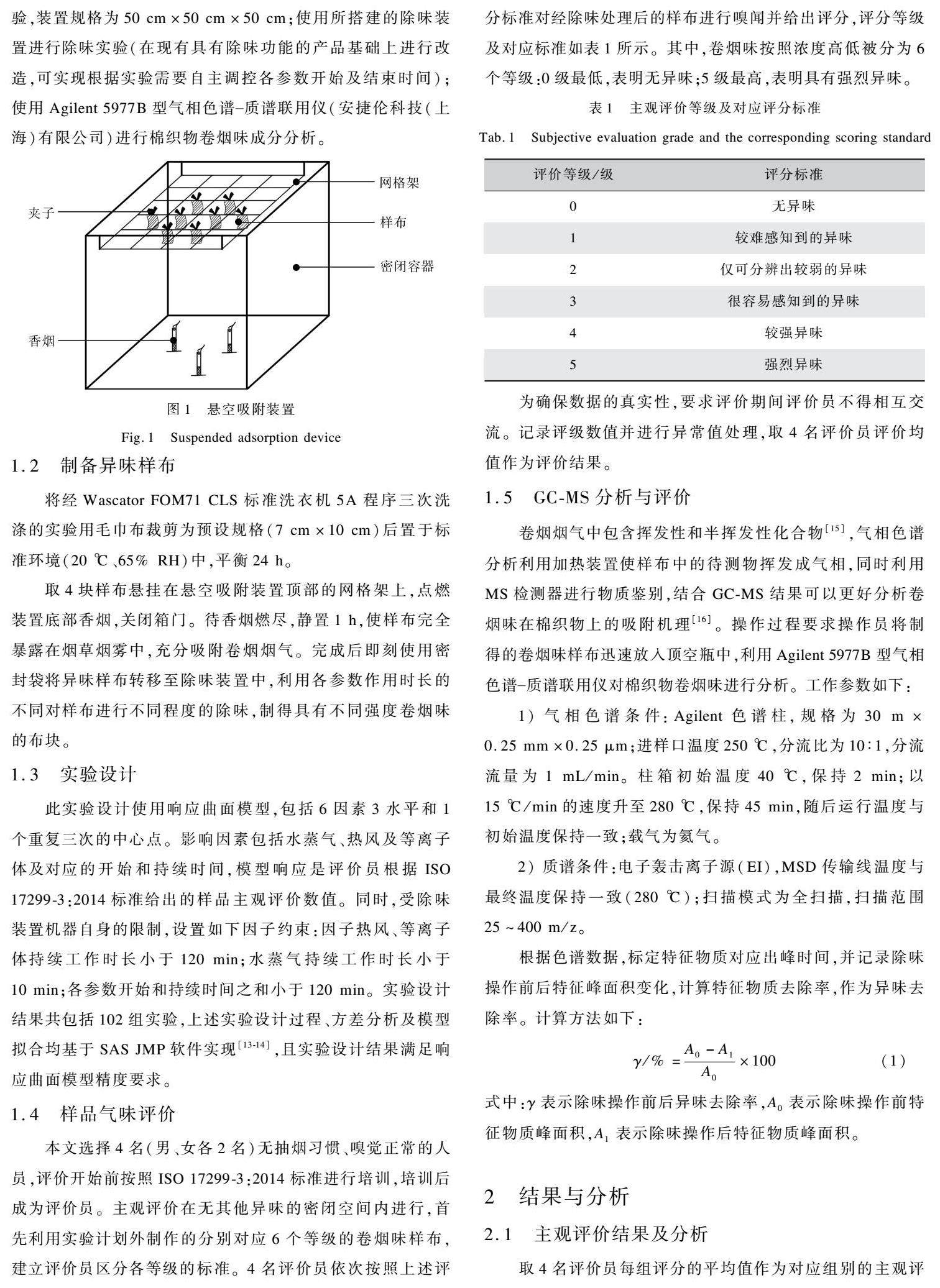 摘要: 中国吸烟人群数量大、分布广泛,而被广泛使用的棉织物吸收烟草烟雾后会释放“三手烟”,不仅会散发难闻气味,还会对人体产生危害。本文利用所建吸附装置和除味装置,对显著影响除味效果的因素进行筛选和响应曲面建模分析,并利用顶空气相色谱分析系统对棉织物释放的卷烟味进行成分分析。结果显示,响应曲面模型的R2为0.74,F统计量为38.04。(剩余14322字)