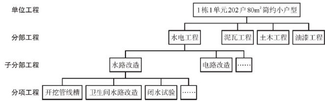 一个完整的住宅体系精装修过程可以称为一个单位工程,单位工程下可以分为单项工程、分部工程等(图1)。(剩余4370字)