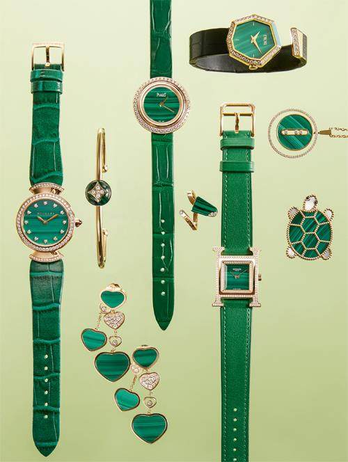 1. Divas’ Dream系列孔雀石腕表Bvlgari2. B Blossom系列手镯Louis Vuitton3. Happy Hearts系列耳环Chopard4. Possession时来运转系列腕表Piaget5. Bvlgari Bvlgari系列18K玫瑰金镶孔雀石钻石戒指Bvlgari6. Gem Dior系列腕表DIOR7. Heure H系列腕表Hermès8. Lucky Move孔雀石中号项链Messika9. Lucky Animals Turtle胸针Van Cleef & Arpels