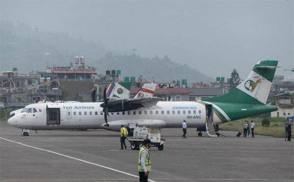 停泊在尼泊尔当地机场上的雪人航空飞机。