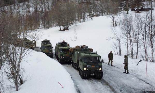 2022年3月24日,美国海军陆战队在挪威北极圈内的Bjerkvik附近参加了一场名为“寒冷反应2022”的军事演习,演习聚集了来自北约成员国以及芬兰和瑞典的约3万名士兵。