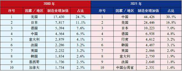 制造业是经济增长的发动机。近年来,关于“美国制造业在衰落”的声音比较多,持此观点者主要有三点理由:一个是美国制造业增加值占全球制造业增加值的比重持续下降。1990年,美国制造业增加值占全球制造业增加值的比重为22%,2021年降至17%。二是美国制造业增加值占国内生产总值(GDP)的比重持续下降。20世纪50年代初期,美国制造业增加值占GDP之比约为28%,2021年降至11%。(剩余3531字)