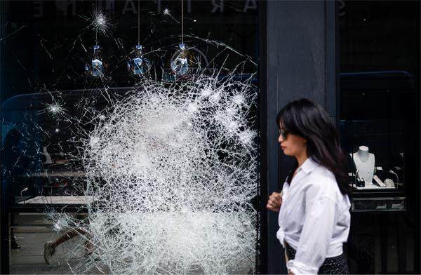 2023年6月30日,在法国巴黎,17岁少年遭警察射杀事件持续发酵,许多商铺遭破坏。