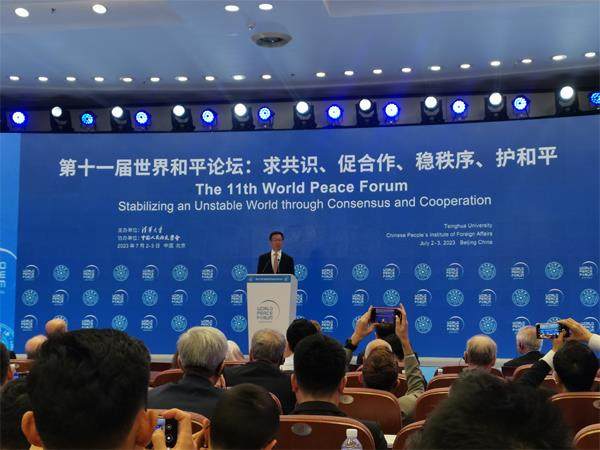 第十一届世界和平论坛7月2日至3日在北京举行。7月2日,国家副主席韩正在清华大学出席论坛开幕式并致辞。金砖国家新开发银行行长、巴西前总统罗塞夫,俄罗斯前联邦安全会议秘书伊万诺夫,印尼前外长维拉尤达等外国前政要、各国驻华使节、专家学者等400余人出席论坛。