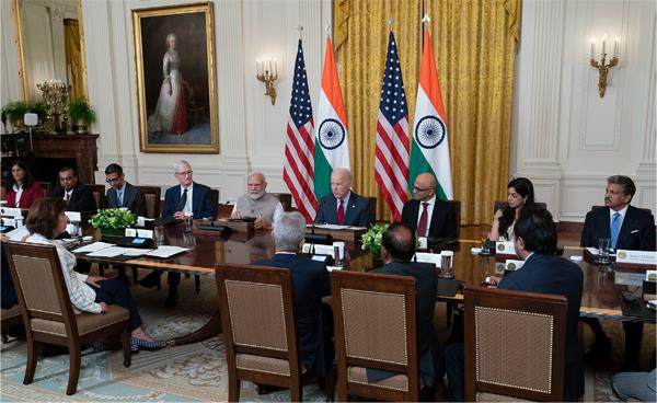 2023年6月23日,印度总理莫迪在对美国进行国事访问期间,与美国总统拜登会见美国和印度商界代表。