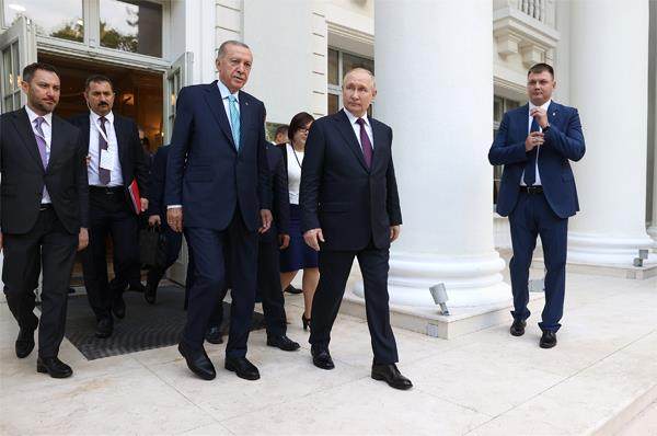 9月4日,俄罗斯总统普京与土耳其总统埃尔多安在索契举行会谈,就国际和地区热点问题以及双边各领域合作等议题广泛交换了意见。这是自土耳其今年2月经历强震与5月举行大选,俄罗斯7月停止执行黑海粮食外运协议以来,两国元首首次进行线下会晤。