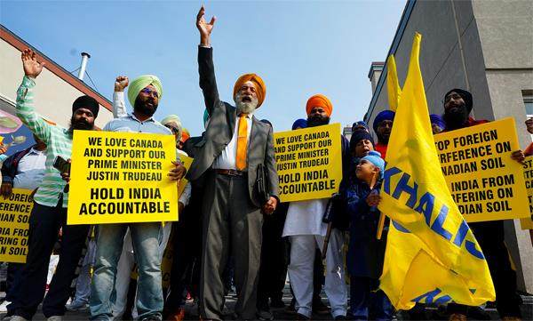 2023年9月25日,加拿大锡克教徒聚集在位于首都渥太华的印度高级专员公署外举行抗议示威活动。