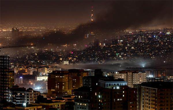2025年6月15日,伊朗首都德黑兰市中心遭以色列袭击后发生爆炸,现场浓烟滚滚。