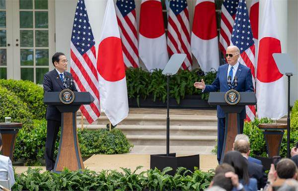 2024年4月10日,美国总统拜登(右一)与日本首相岸田文雄在联合新闻发布会上宣布,两国将在人工智能和半导体等领域深化合作。