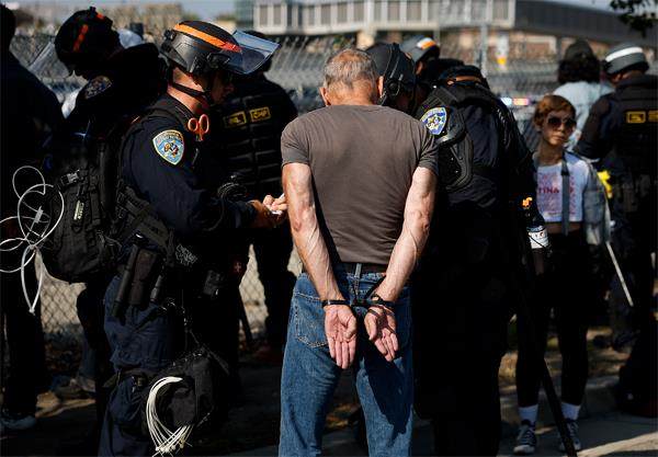 2025年6月10日,美国洛杉矶,民众抗议美国移民与海关执法局(ICE)抓捕非法移民的行动,抗议者被警方拘捕。