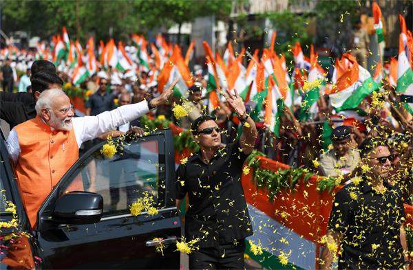 2025年5月26日,印度总理莫迪赴古吉拉特邦参加集会,受到当地人群欢迎。