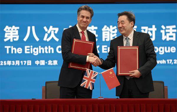 2025年3月17日,第八次中英能源对话在北京召开,中英签署重要清洁能源合作文件。