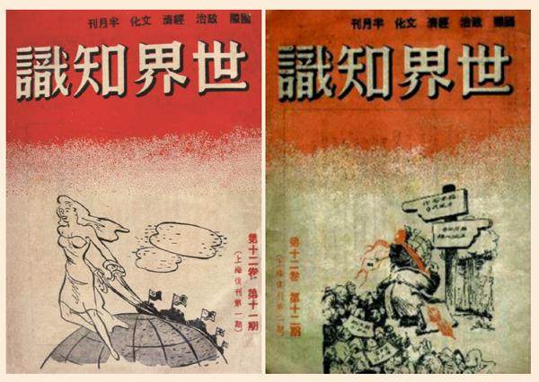 1945年12月出版发行的《世界知识》第十二卷第十一期(上海复刊第一期)和第十二卷第十二期(上海复刊第二期)封面。