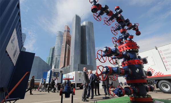 2025年7月18日,欧盟通过对俄第18轮制裁方案,直指俄能源、金融、军工“三大命脉”。图为2025年4月15日在莫斯科举行的第24届俄罗斯国际石油天然气及石油化工技术展览会。