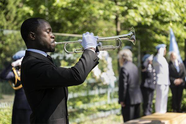 2023年5月25日,联合国秘书长古特雷斯向维和人员纪念碑敬献花圈,缅怀自1948年以来在联合国维和行动中殉职的维和人员。