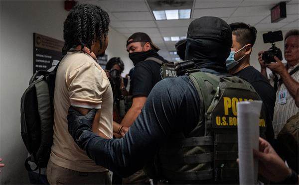 2025年8月4日,卢旺达政府表示,已与美国达成协议,卢方将接收至多250名从美国遣返的非法移民。图为8月5日,一名移民被纽约曼哈顿移民法庭拘留。