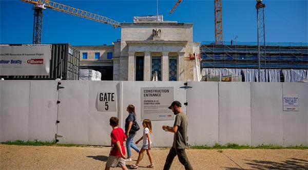 2025年7月24日,位于华盛顿的美联储总部,翻修工程正在进行中。