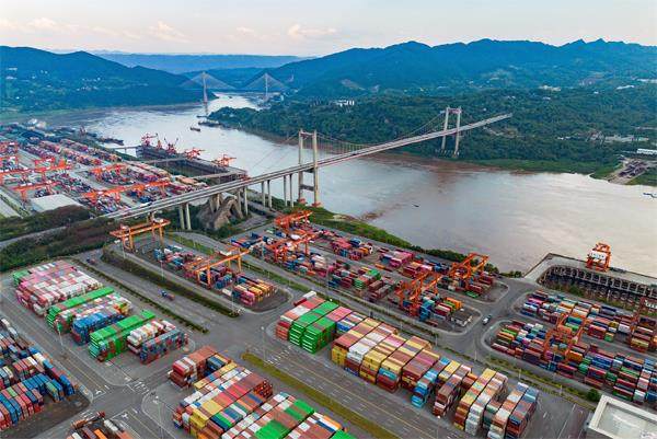 中国在全球治理中始终坚持行动导向,与150多个国家签署共建“一带一路”合作文件。图为“一带一路”与长江经济带联结点——重庆果园港。