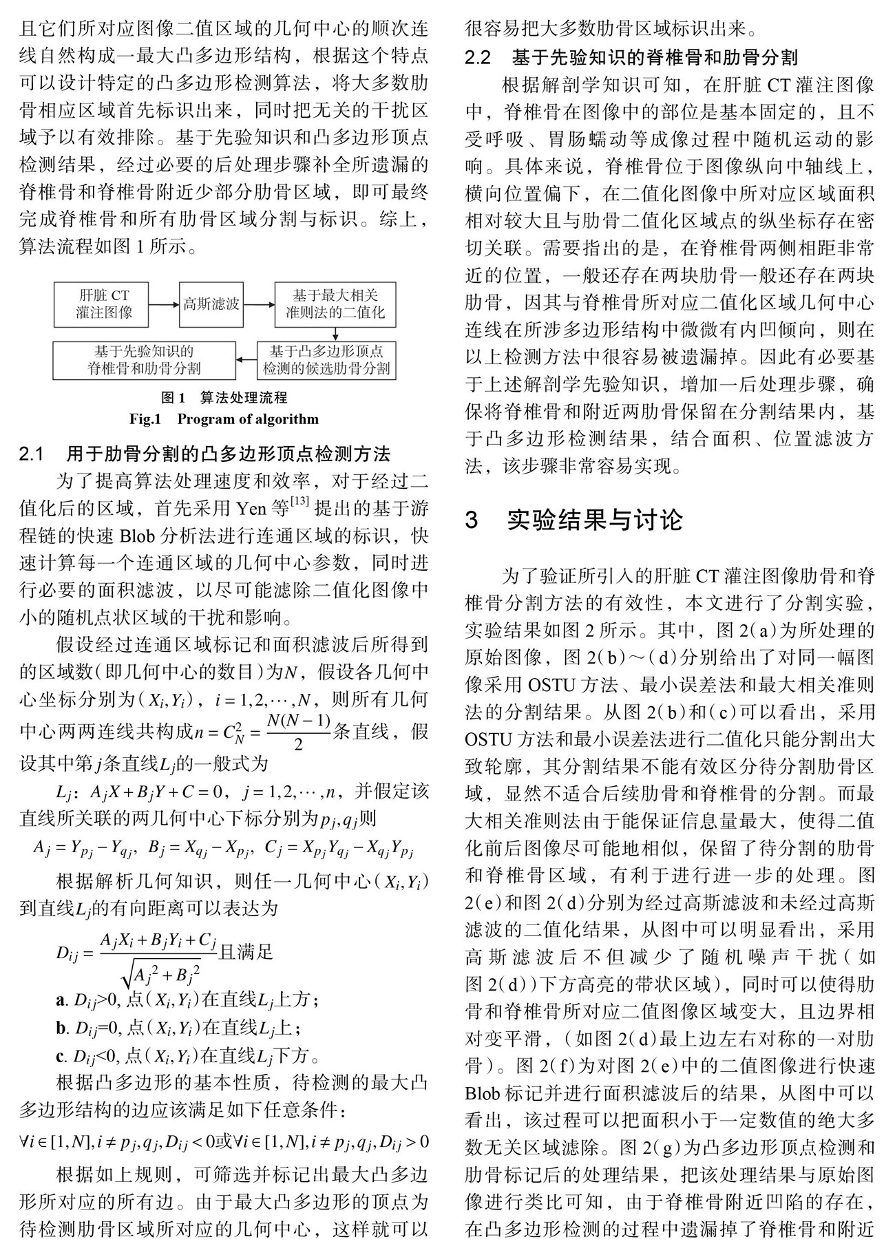 基于凸多边形顶点检测的肝脏CT灌注图像肋骨和脊椎骨分割方法研究